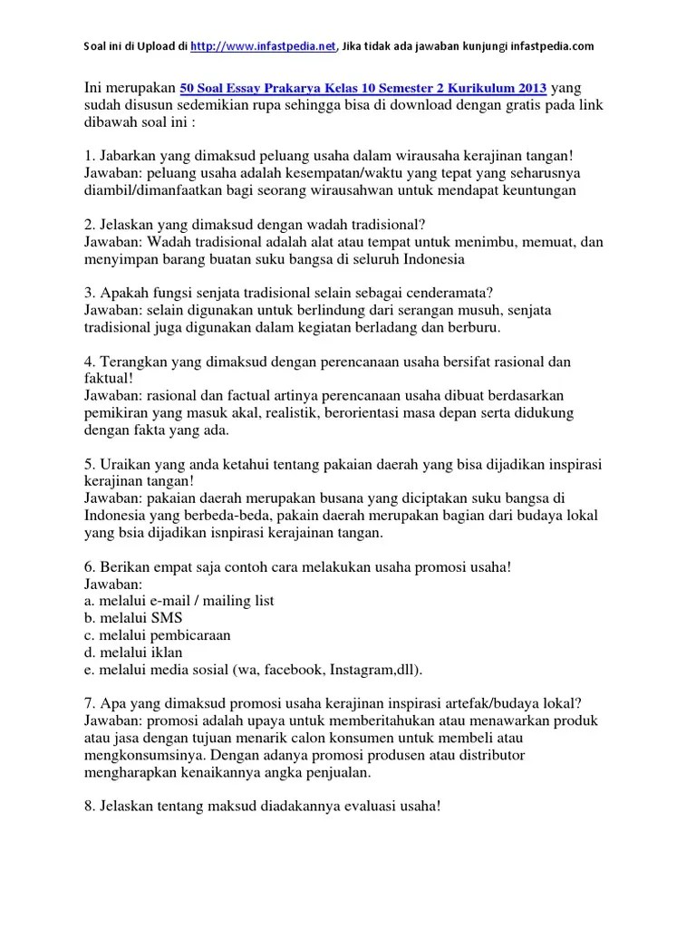 Soal Essay Prakarya Kelas 10 Pengolahan / Soal Uas Prakarya Kelas 9 Semester 2 Dan Kunci Jawaban Rizsafa Informasi Pendidikan Informasi Pendidikan / Jawablah pertanyaan berikut ini dengan memilih pernyataan yang paling tepat.